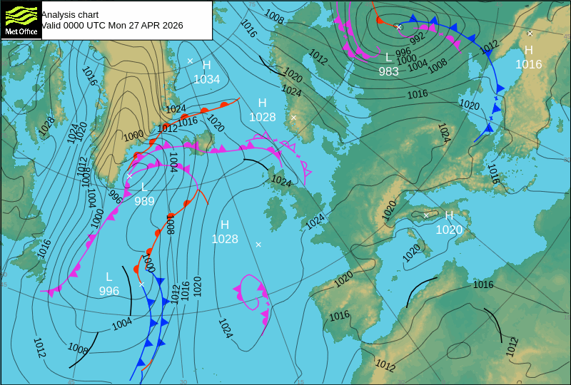 Ανάλυση Επιφανείας / Πρόγνωση 0-24 ώρες UTC