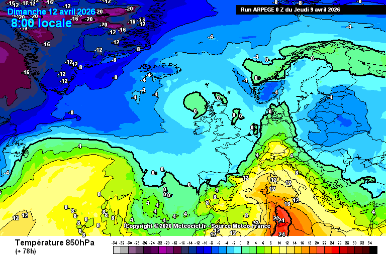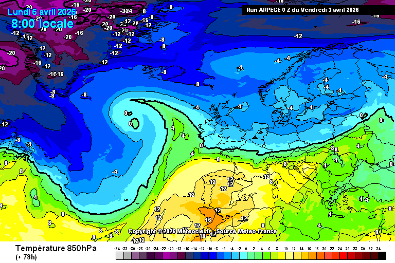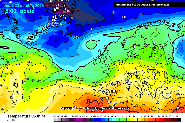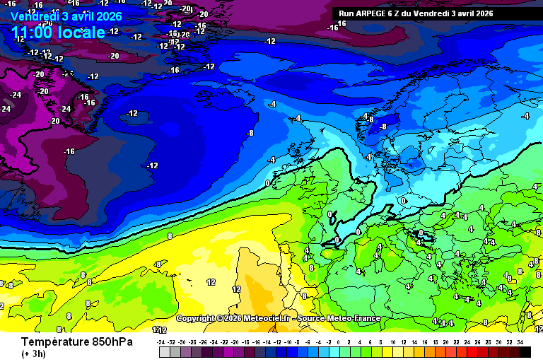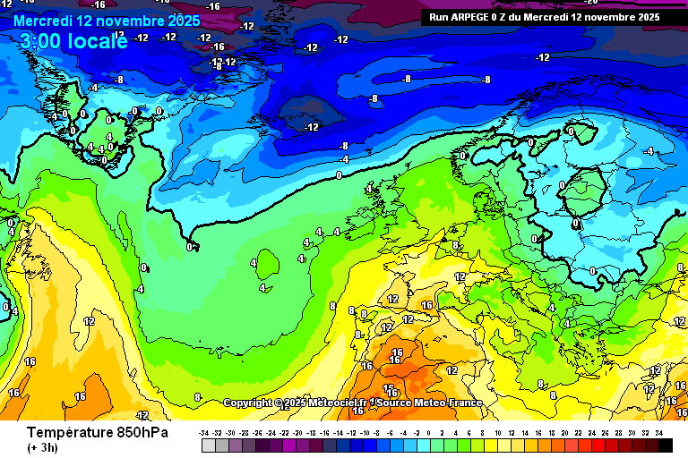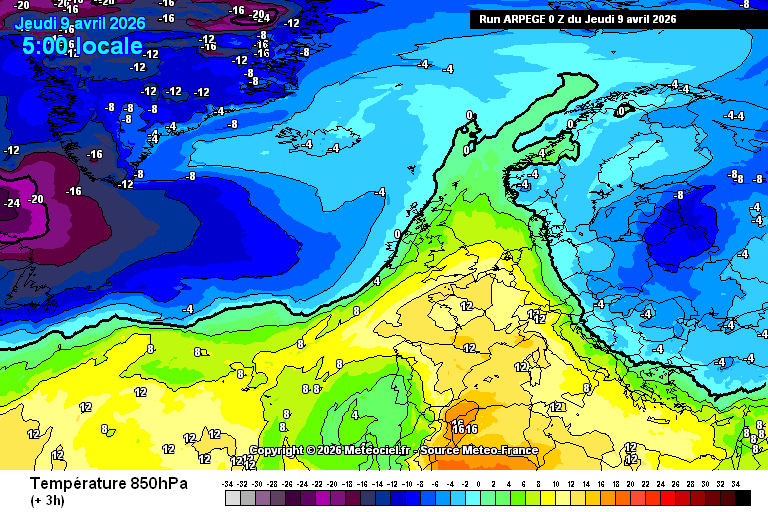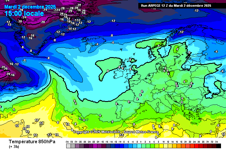 Θερμοκρασία στα 850 hPa στην Ευρώπη
