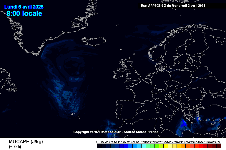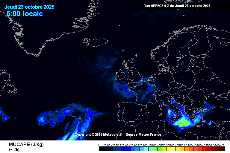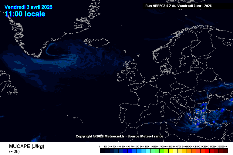 Περισσότερο Ασταθής (MU) Διαθέσιμη Δυναμική Ενεργεία Συναγωγής (CAPE) στην Ευρώπη