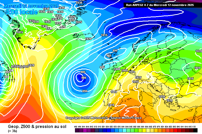 Γεωδυναμικό Ύψος στα 500 hPa & Πίεση Επιφανείας στην Ευρώπη