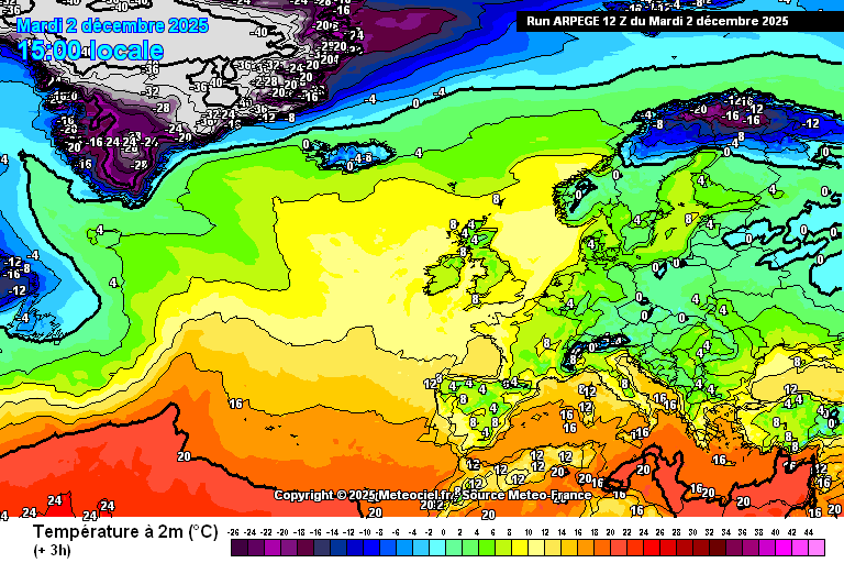 Θερμοκρασία στα 2 μέτρα στην Ευρώπη
