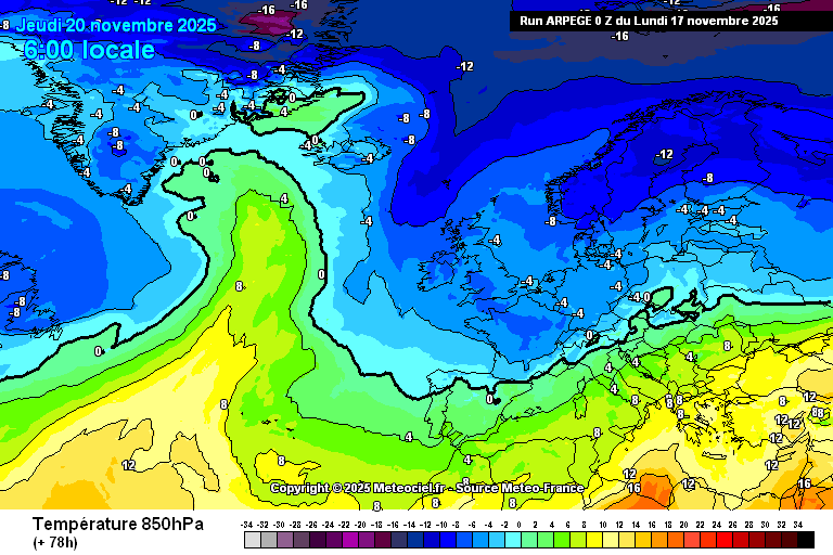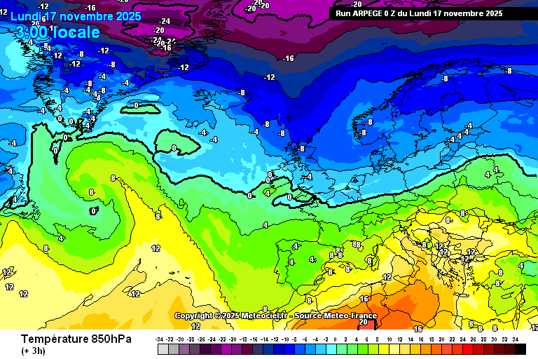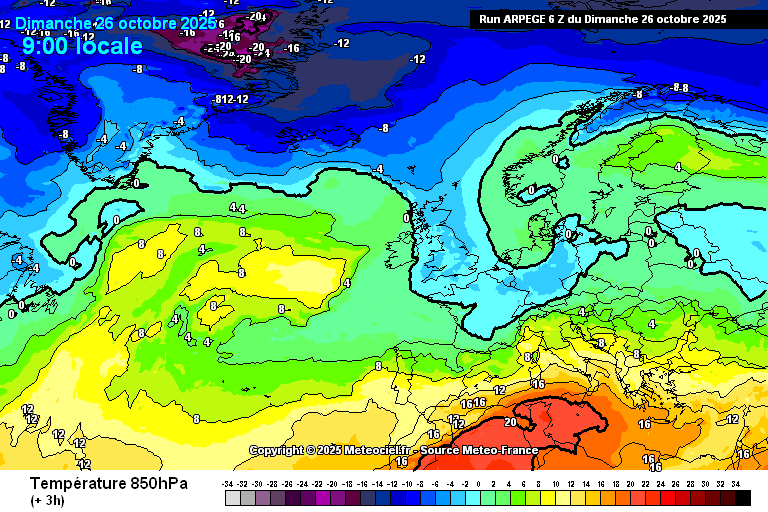 Θερμοκρασία στα 850 hPa στην Ευρώπη