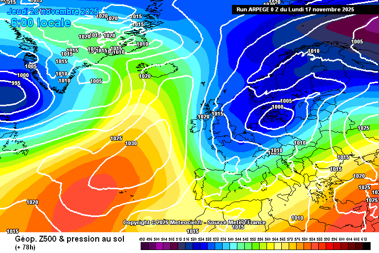 Γεωδυναμικό Ύψος στα 500 hPa & Πίεση Επιφανείας στην Ευρώπη