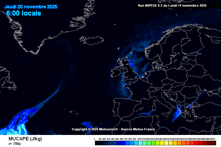 Περισσότερο Ασταθής (MU) Διαθέσιμη Δυναμική Ενεργεία Συναγωγής (CAPE) στην Ευρώπη