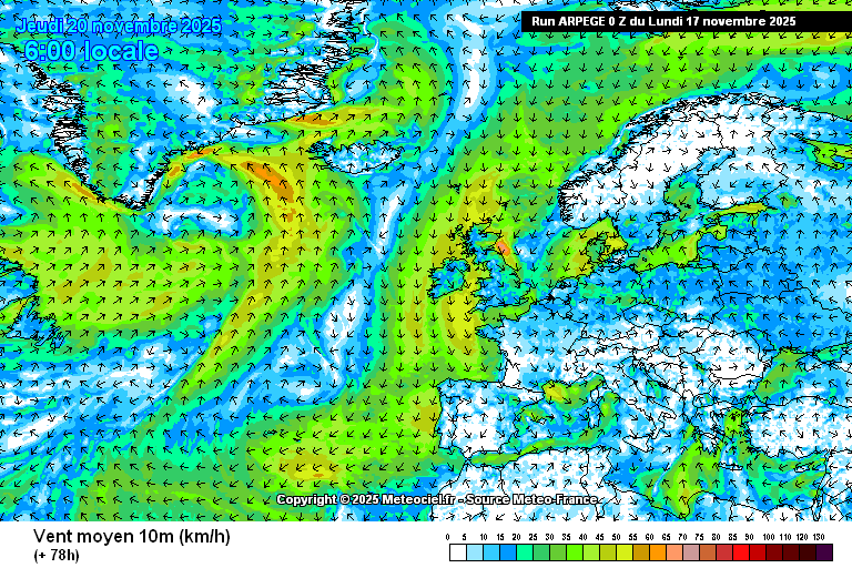 Άνεμος στα 10 μέτρα στην Ευρώπη