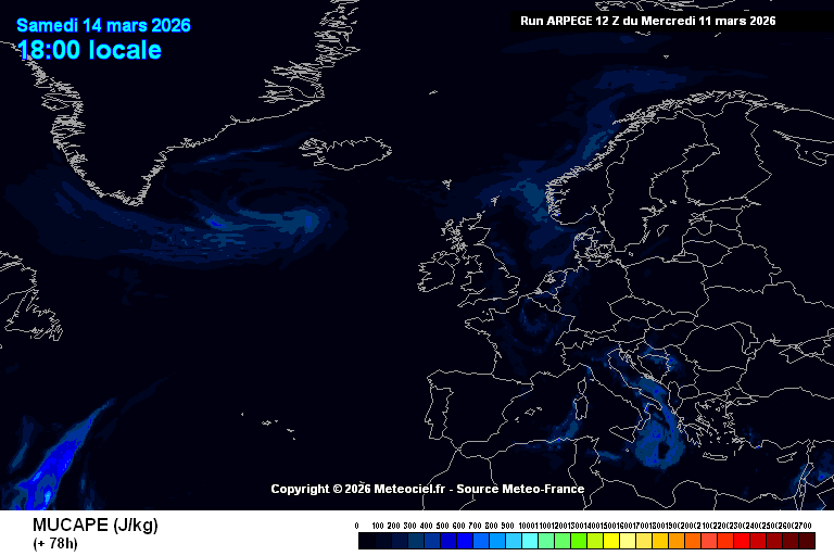 Most Unstable Convective Available Potential Energy over Europe
