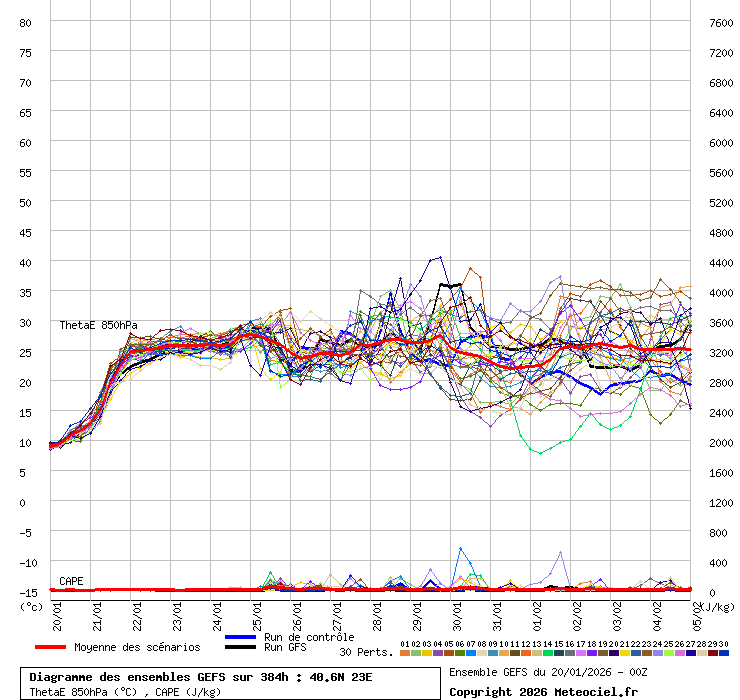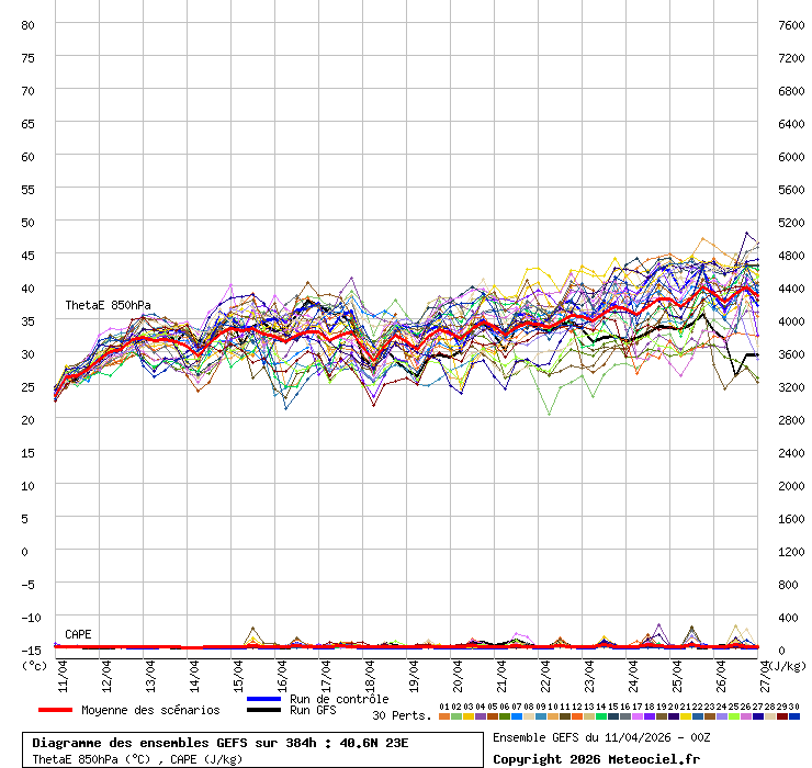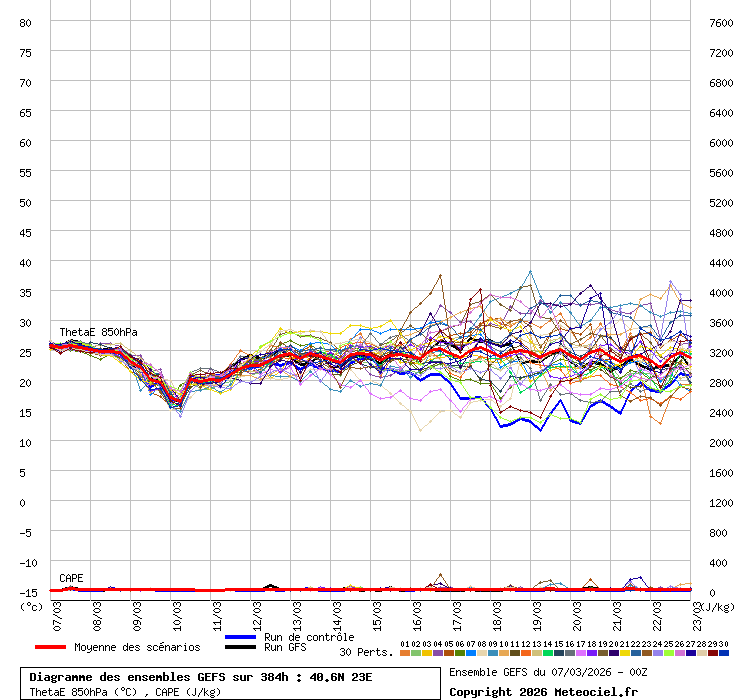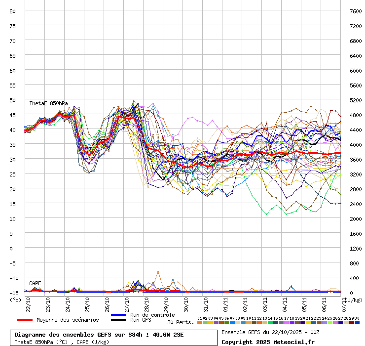 Θερμοκρασία(Θ) στα 2 μέτρα, στα 850 hPa, στα 500 hPa, Υετός(Υ), Πίεση(Πσ) (επιφάνεια θαλάσσης), Theta-E(tE) στα 850 hPa & CAPE(C) |