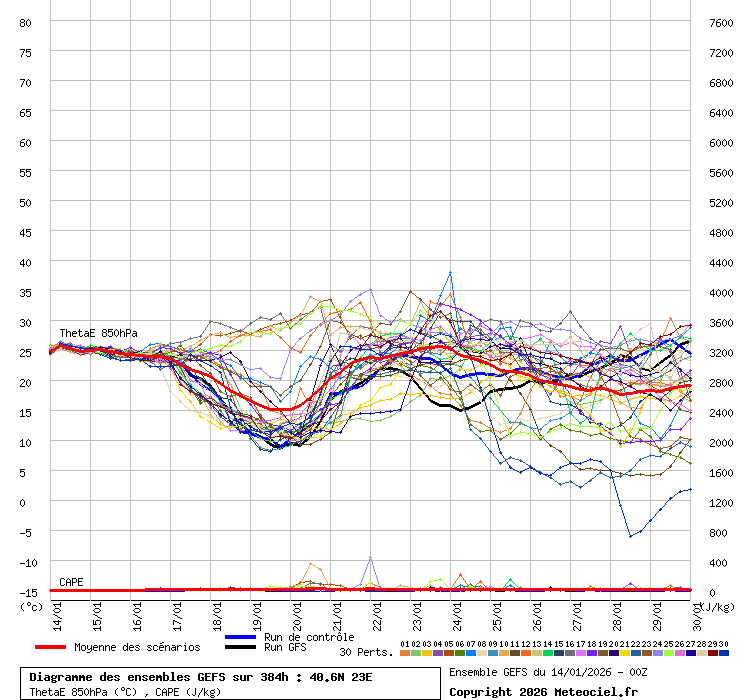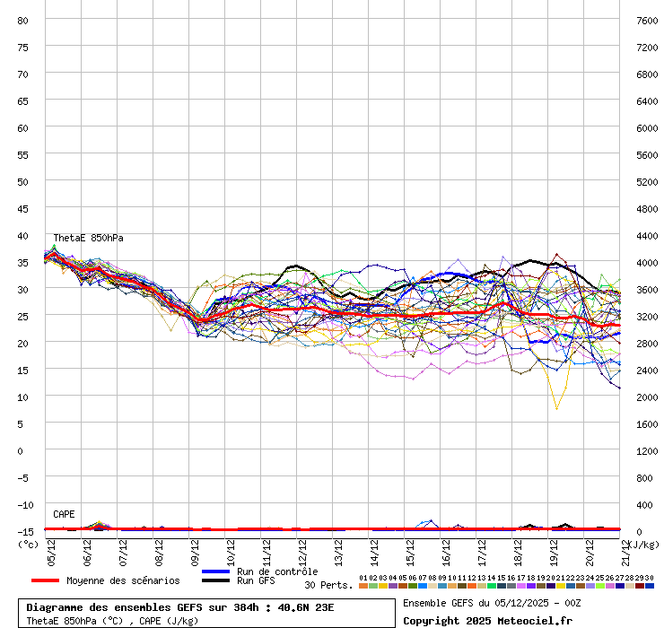 Temperature(T) at 2 meters, at 850 hPa, at 500 hPa, Precipitation(P), Pressure(Prs) (sea level), Theta-E(tE) at 850 hPa & CAPE(C) |
