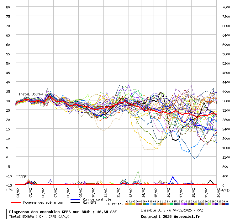 Θερμοκρασία(Θ) στα 2 μέτρα, στα 850 hPa, στα 500 hPa, Υετός(Υ), Πίεση(Πσ) (επιφάνεια θαλάσσης), Theta-E(tE) στα 850 hPa & CAPE(C) |