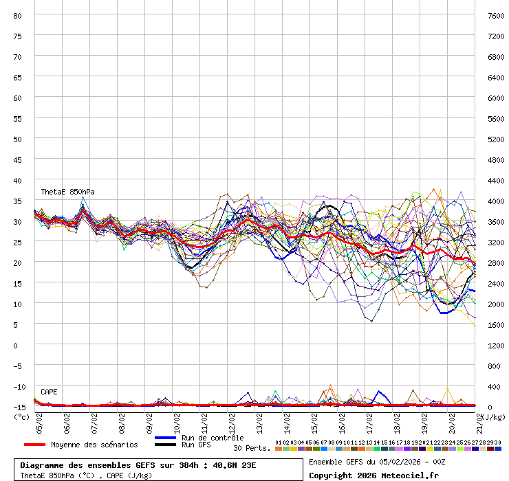 Θερμοκρασία(Θ) στα 2 μέτρα, στα 850 hPa, στα 500 hPa, Υετός(Υ), Πίεση(Πσ) (επιφάνεια θαλάσσης), Theta-E(tE) στα 850 hPa & CAPE(C) |